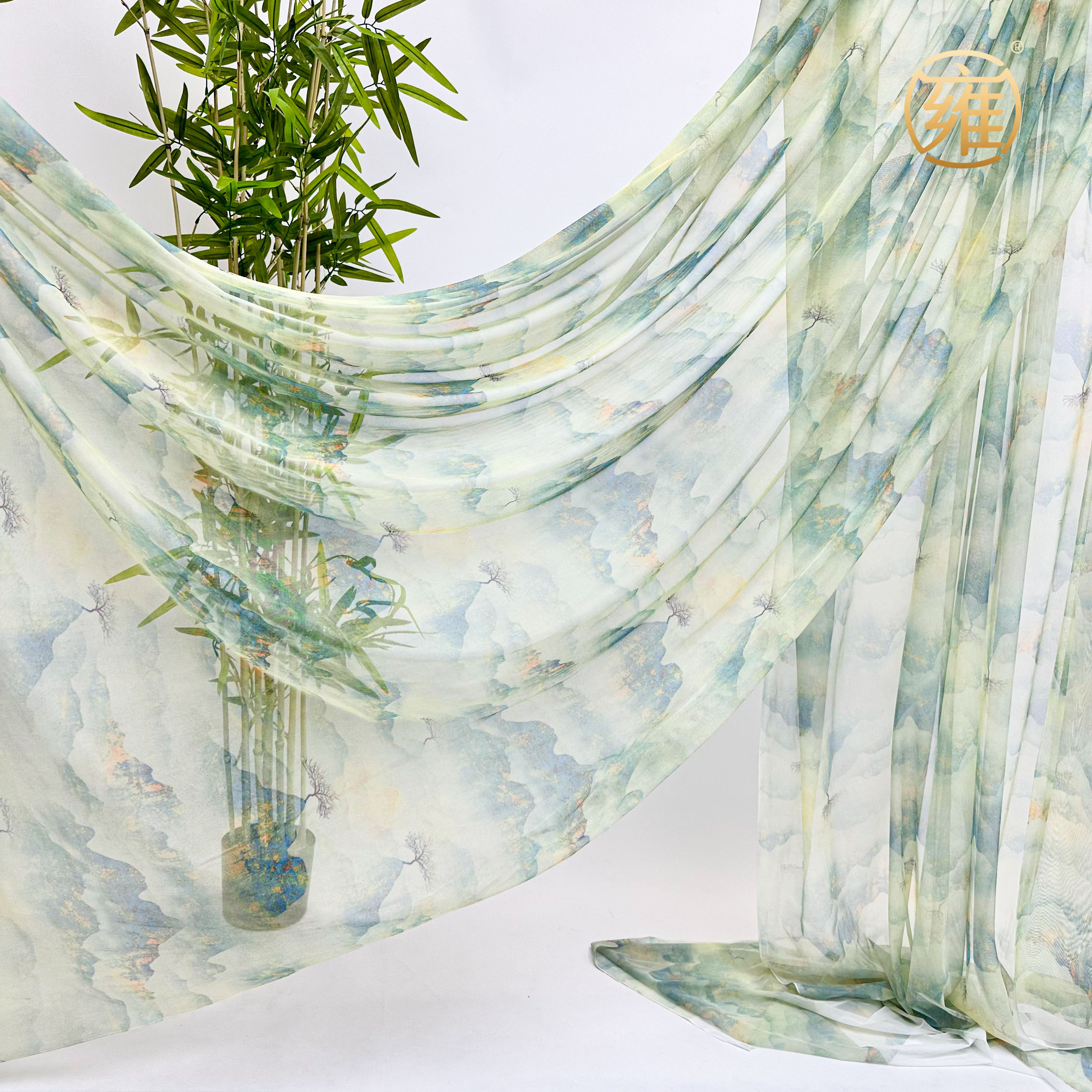 新中式千里江山图画纱幔半透明布户外国风搭建背景布茶室装饰纱幔