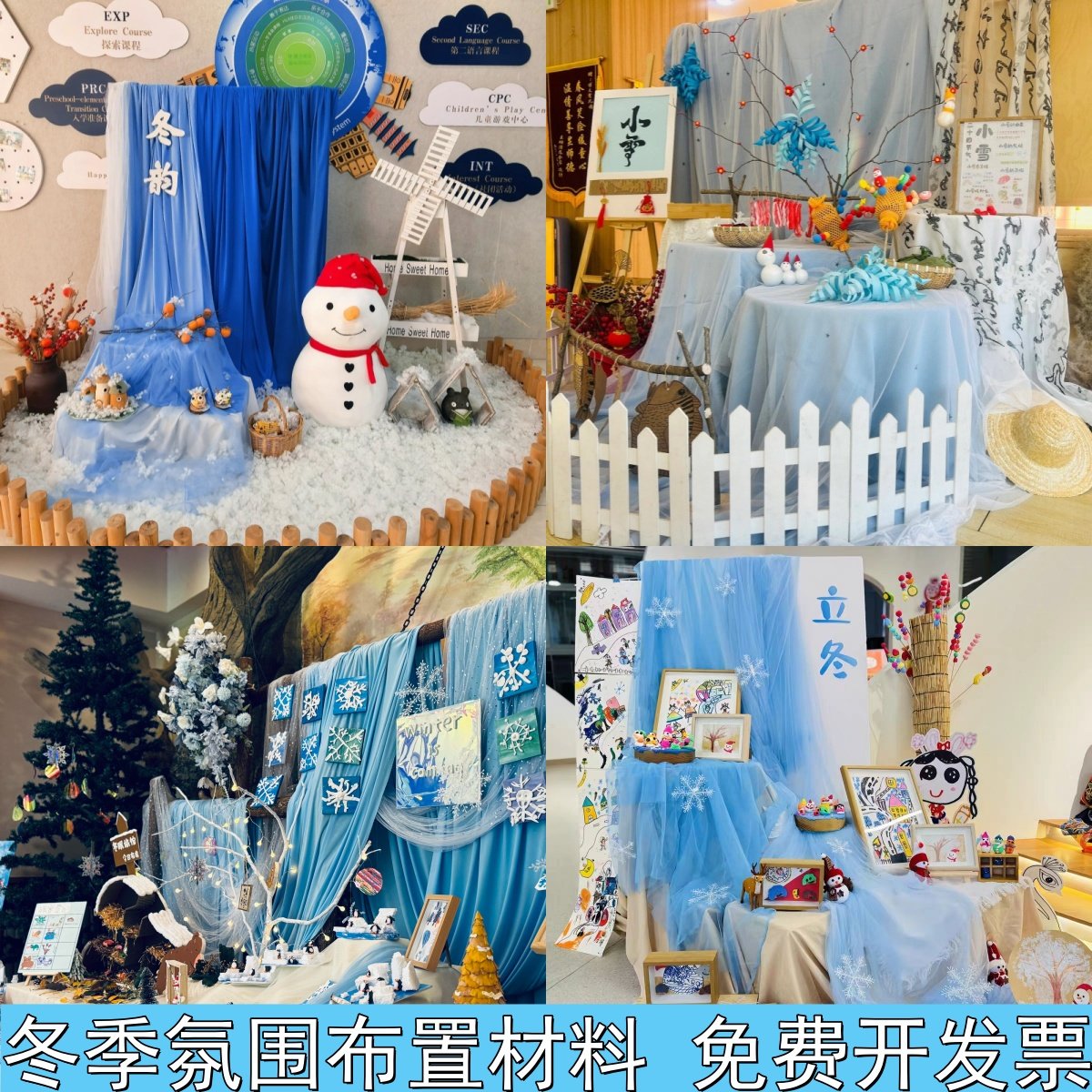 冬季幼儿园环创纱幔布料蓝色背景墙吊坠大厅户外装饰网纱材料白色