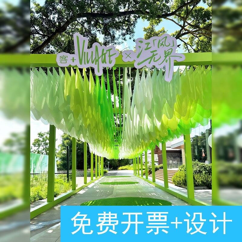 国风装饰幼儿园绿色纱幔六一新中式布置庭院打卡网红风户外装饰纱