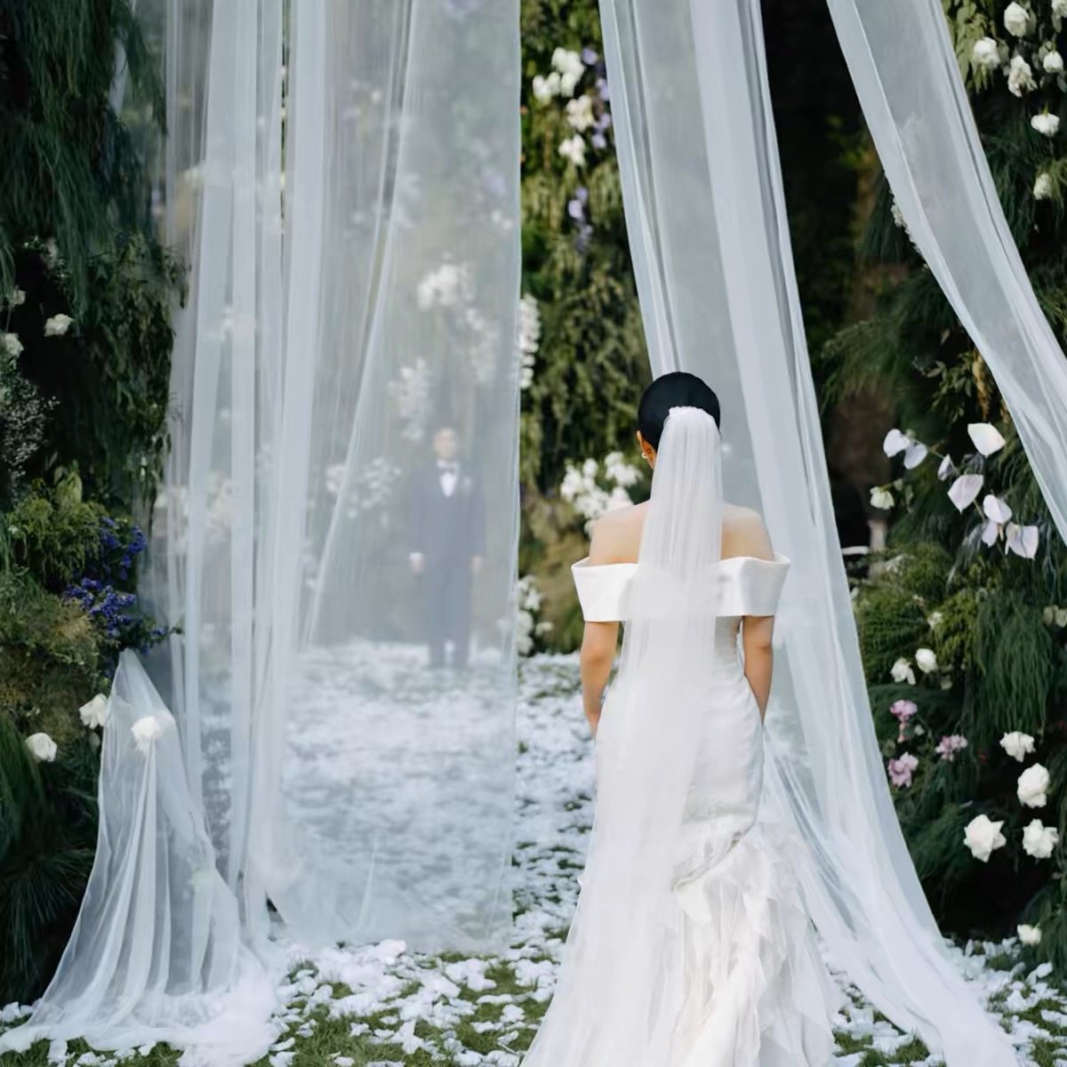 半透明纱幔婚庆装饰纱婚礼纱幔白色背景纱布吊顶挂布婚庆帷幔纱幔