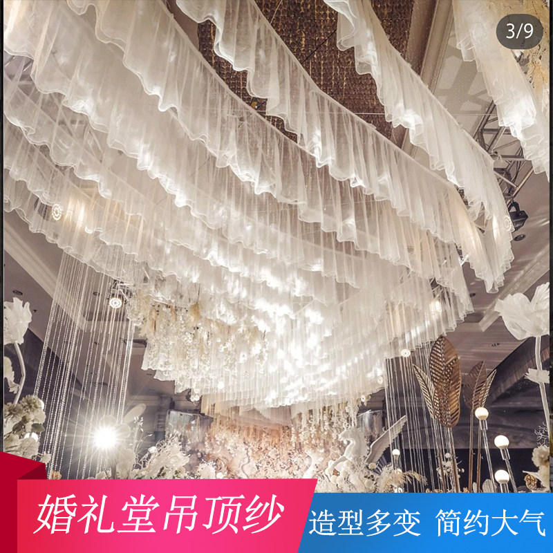 婚庆吊顶纱云顶纱瑞士网纱舞台吊顶纱装饰纱幔顶部装饰纱屋顶飘顶