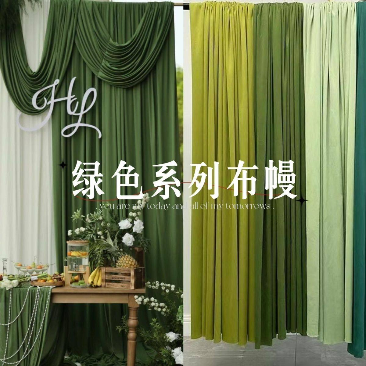 绿色婚庆牛奶丝弹力布料户外牛油果婚礼吊顶装饰纱幔环创舞台面料