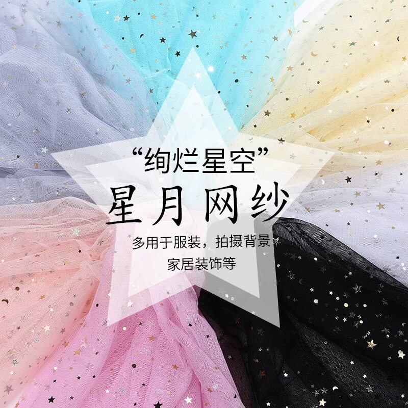 亮片布料网红美甲拍照粉色纱布纱幔网纱布星星纱背景布装饰纱布头