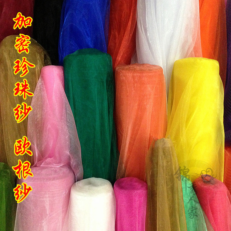 加密珍珠纱/欧根纱/柯根纱布料 婚纱头纱裙纱婚礼网纱装饰纱 透明