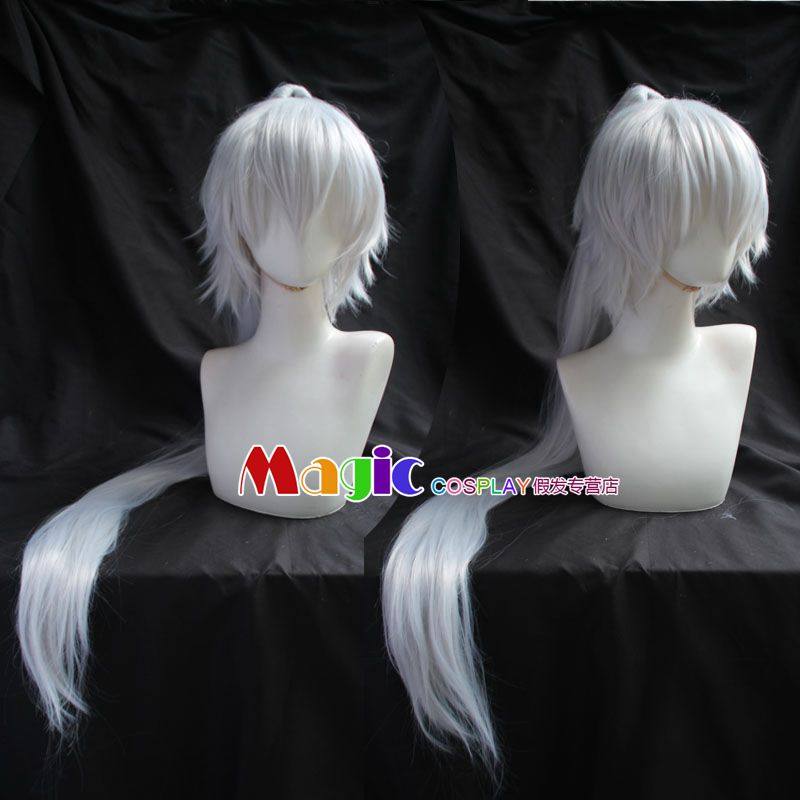 茨木童子 COS假发 土方岁三 沈王爷 银白色古装男马尾长发假毛