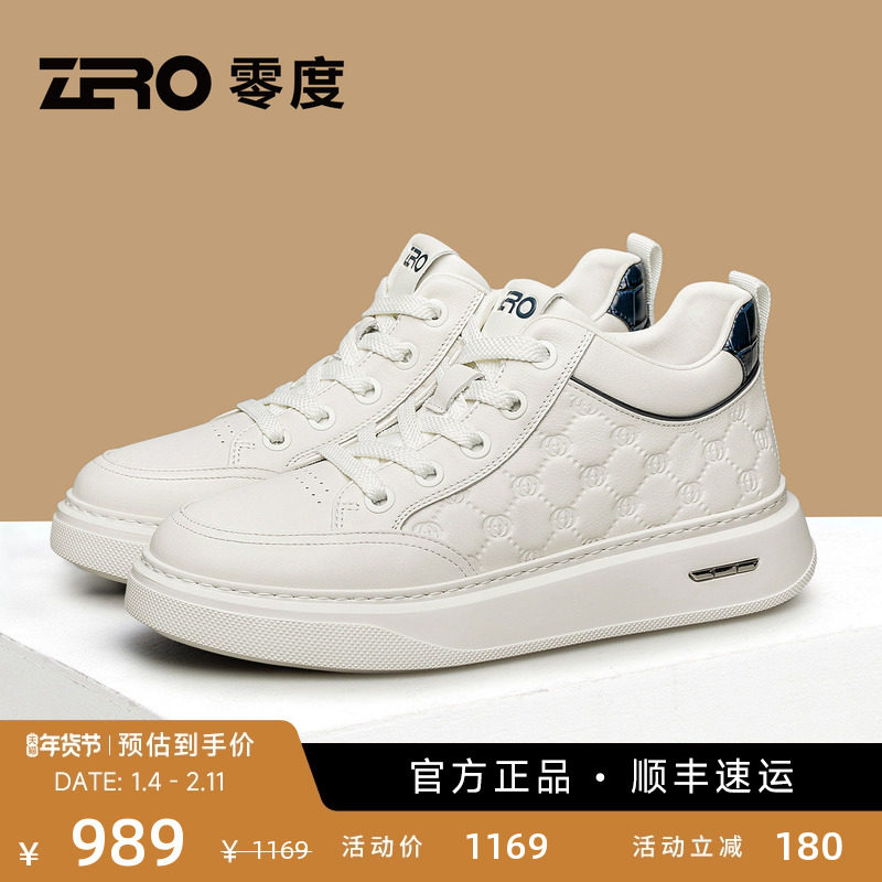 ZRO零度男鞋冬季小白鞋男2025新款真皮压花时尚轻便厚底舒适板鞋