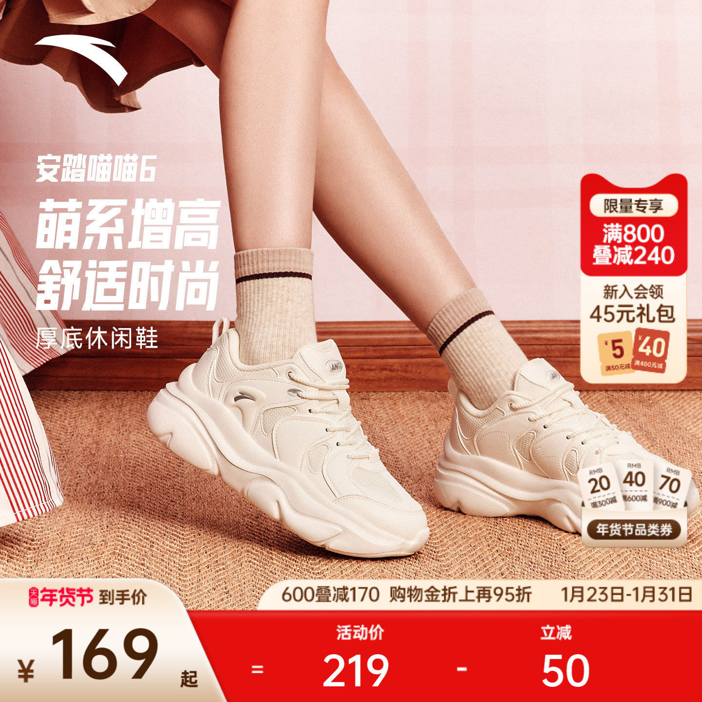安踏轻程丨厚底板鞋女鞋2025冬季小白鞋休闲鞋增高复古百搭运动鞋
