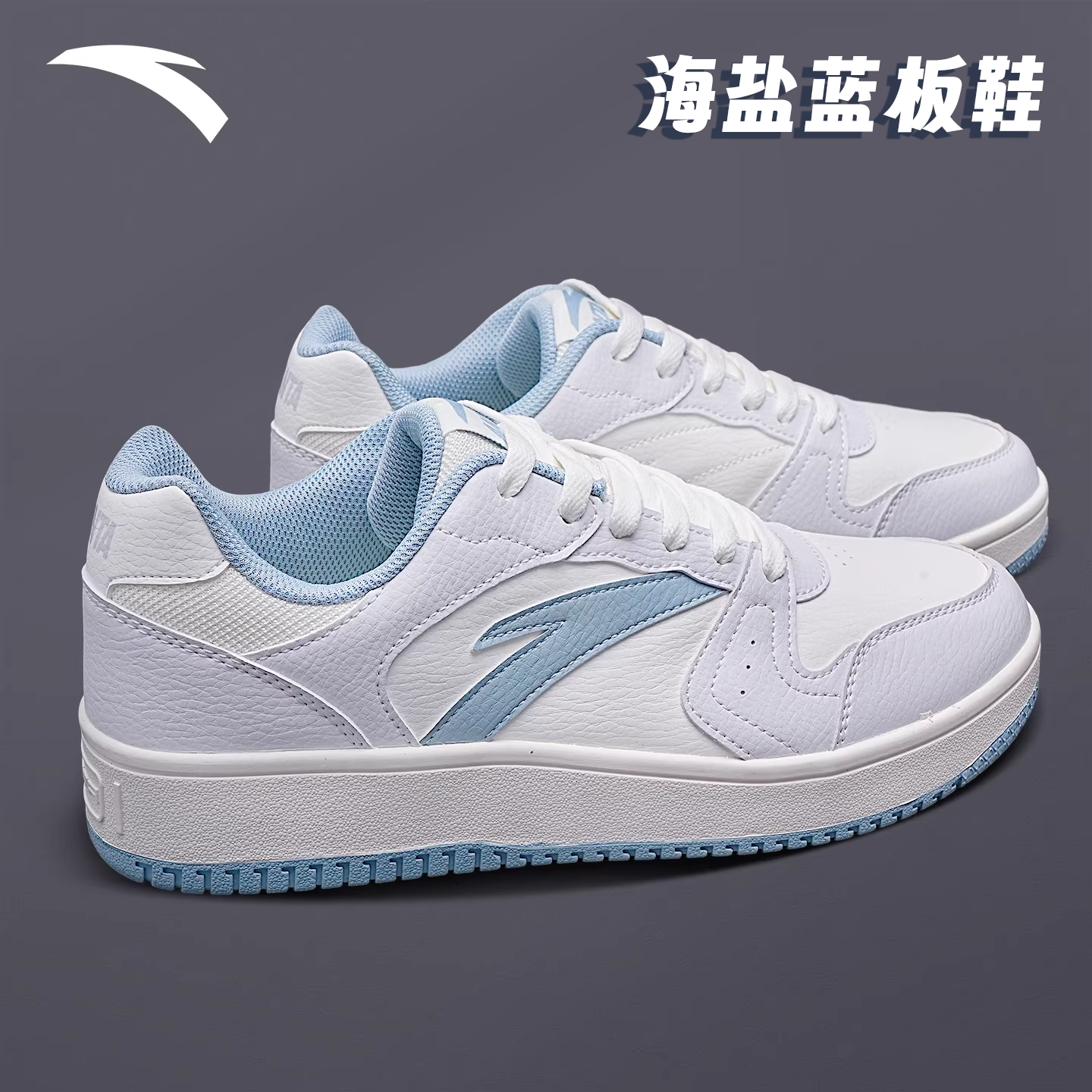 安踏小零感低帮板鞋厚底增高冬季小白鞋浅蓝运动鞋撞色休闲鞋男鞋