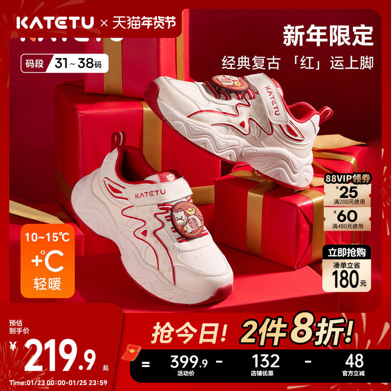 卡特兔童鞋儿童运动鞋2025冬季小白鞋休闲运动鞋保暖儿童鞋子
