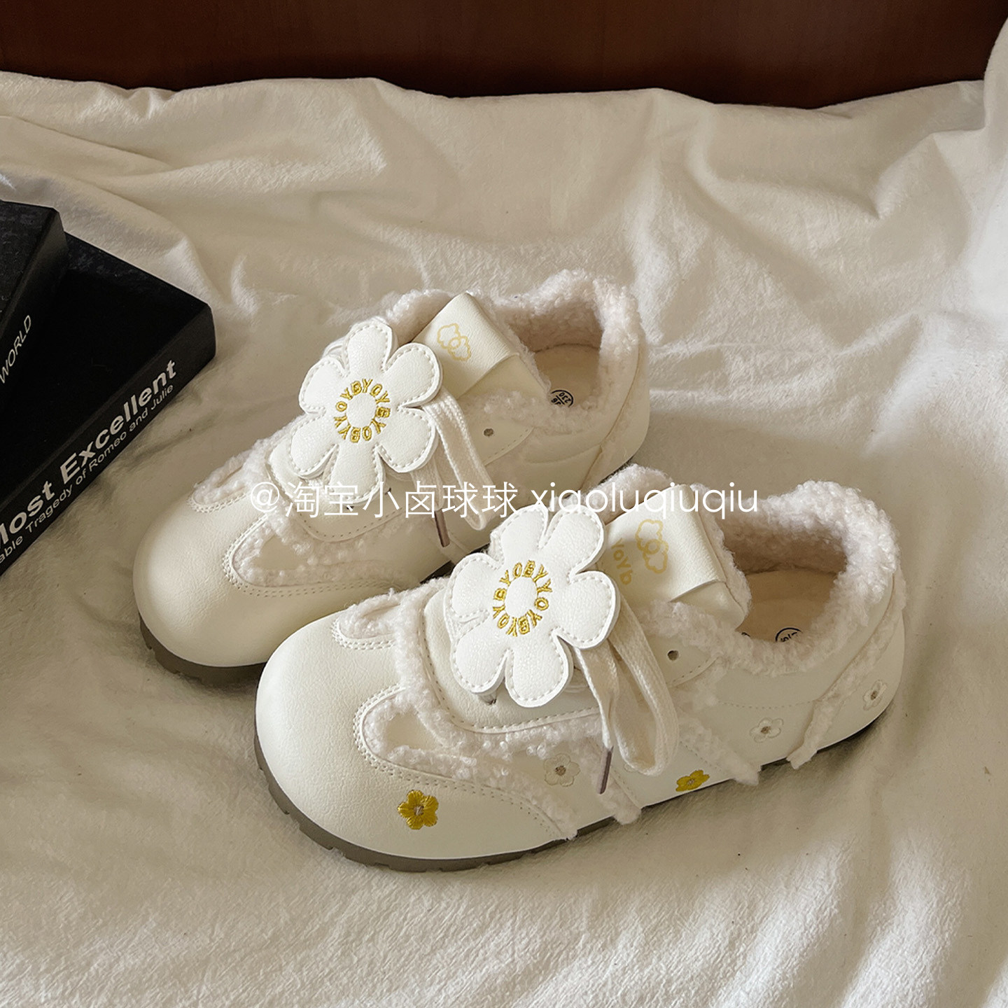 小卤球球加绒板鞋厚底冬季小白鞋女款2025新款二棉鞋百搭款鞋子