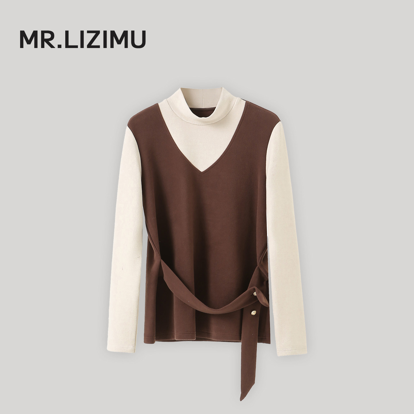 李子木先生拼色半高领磨毛加绒卫衣女冬季保暖假两件百搭打底上衣