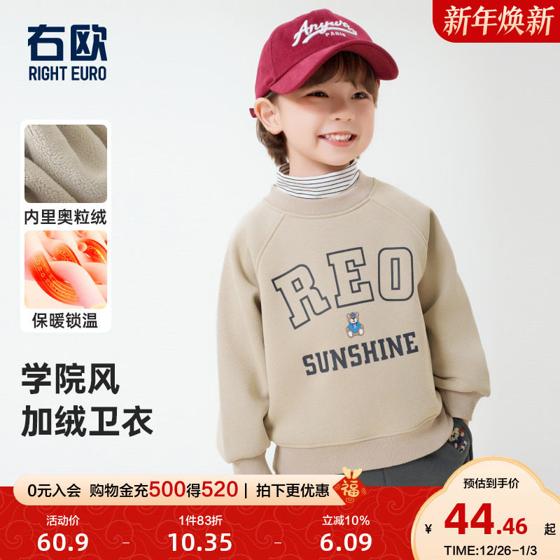 威尔贝鲁儿童加绒卫衣秋冬2025新款男女童半高领假两件套头卫衣厚