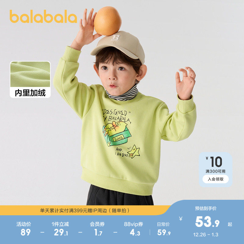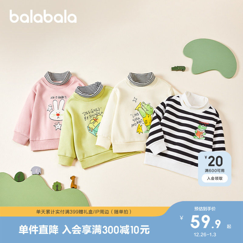 巴拉巴拉儿童卫衣男童新款秋冬装女童假两件加绒加厚高领宝宝上衣