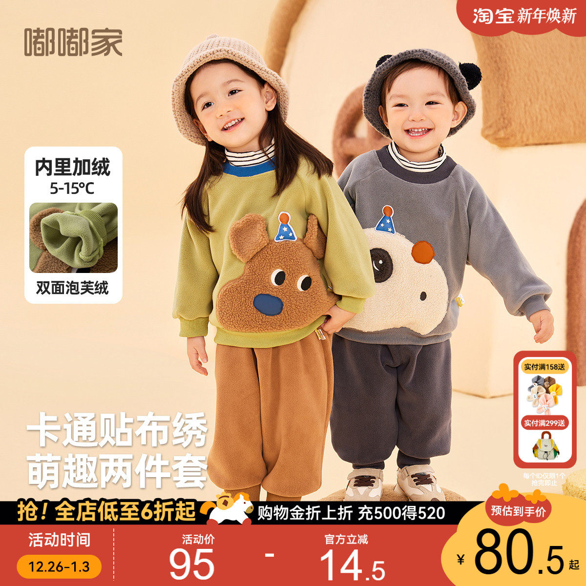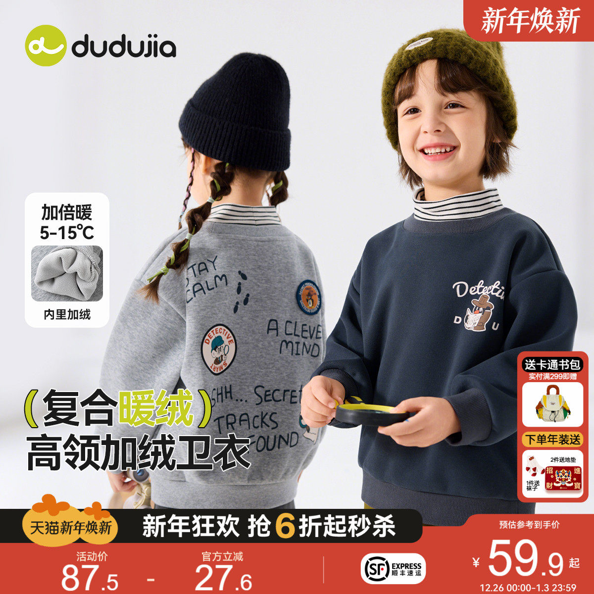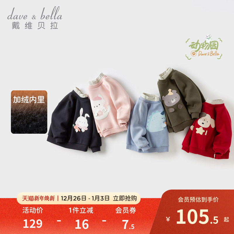 戴维贝拉儿童卫衣冬装新款男童女童新年加绒假两件半高领上衣A类