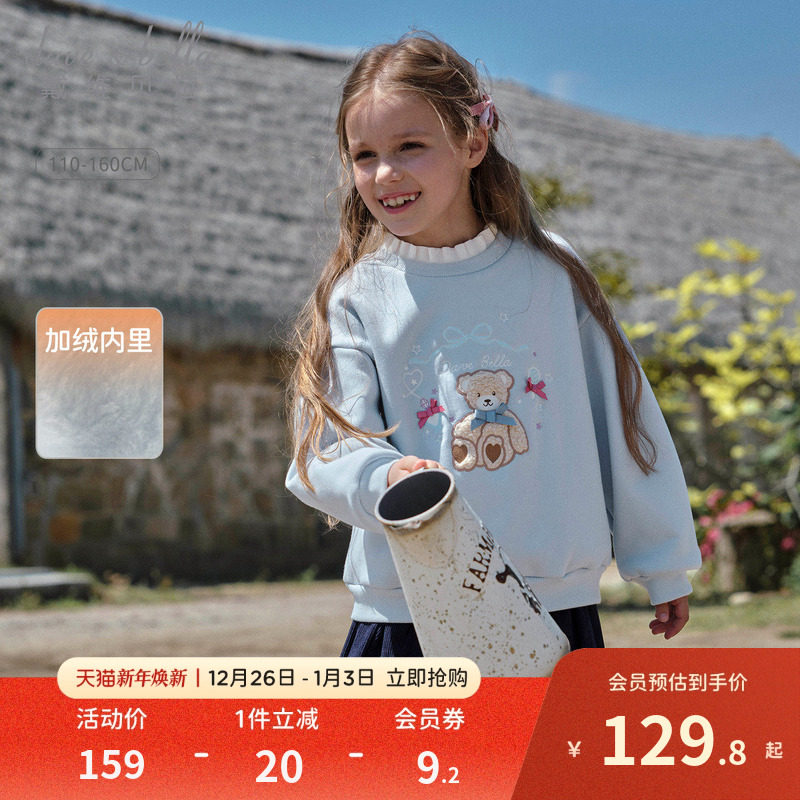 戴维贝拉儿童卫衣2025女童新款假两件套头衫中大童冬装半高领上衣