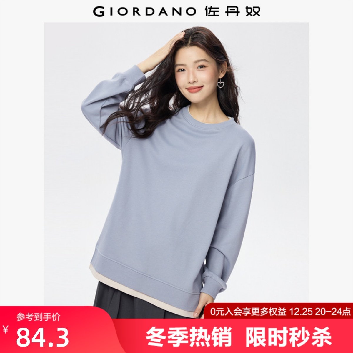 佐丹奴假两件卫衣女秋冬新款套头衫开叉宽松半高领上衣女05325799