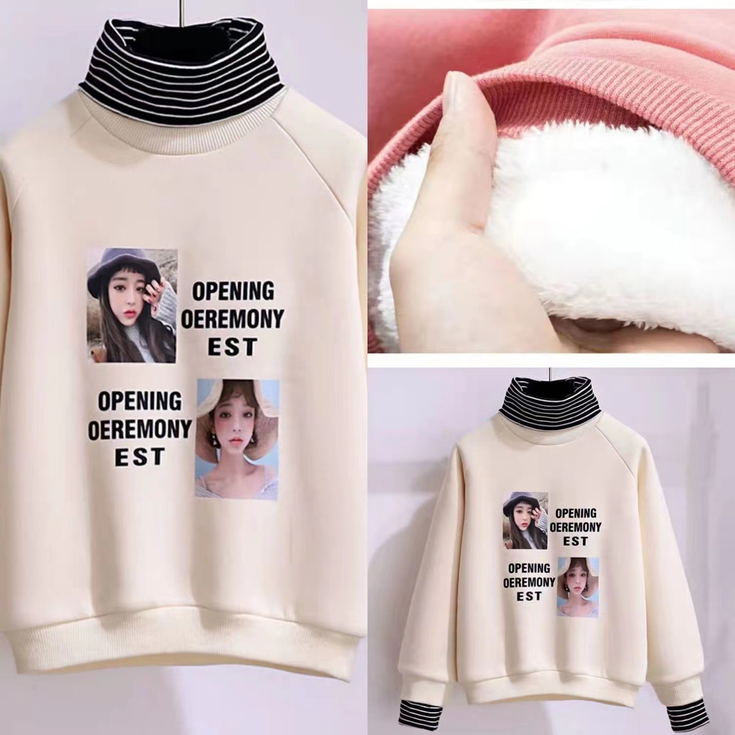 女童卫衣冬季加绒加厚中大童新款保暖上衣假两件高领时尚洋气潮流