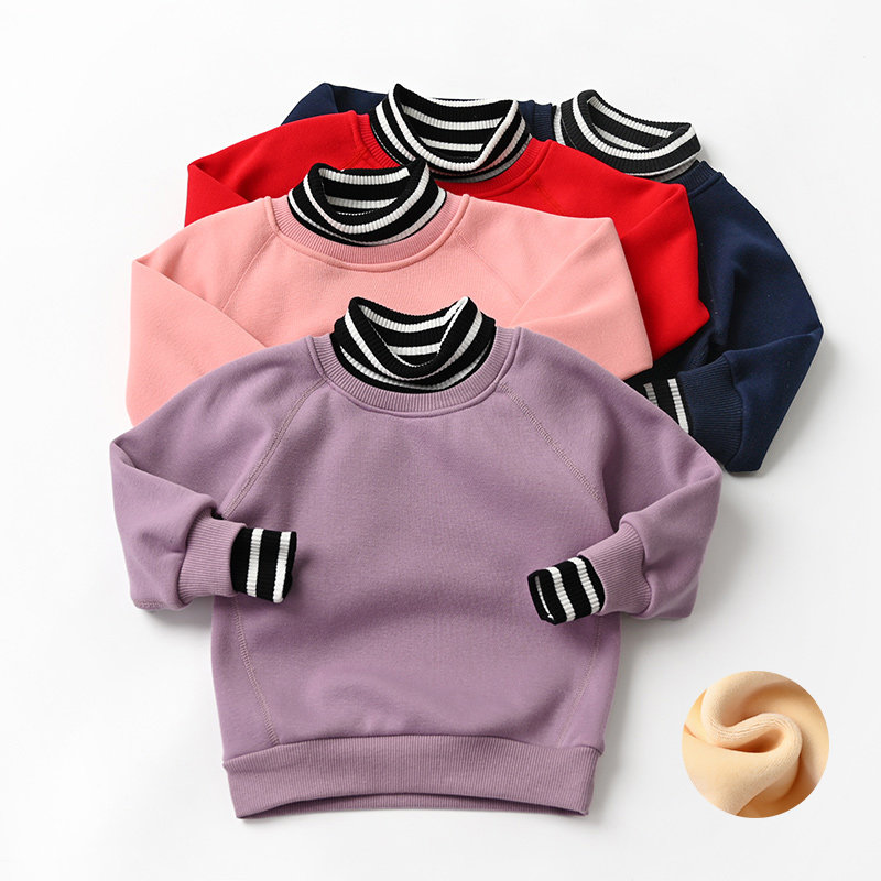 特 儿童纯棉加绒卫衣 男女童高领假两件保暖上衣 秋冬款 童装