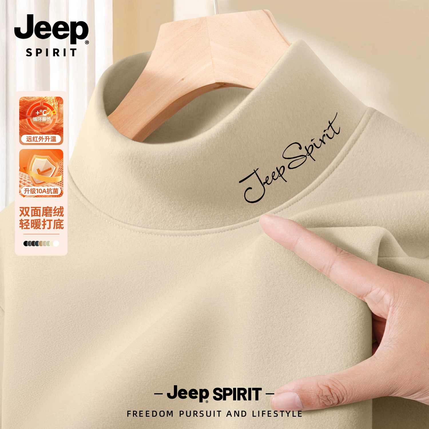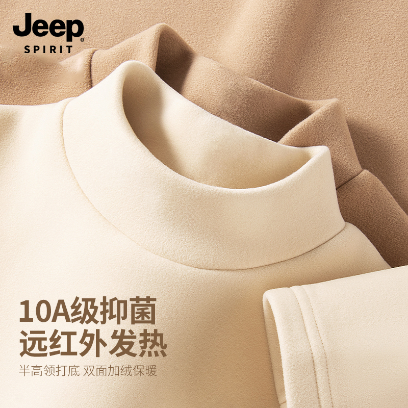 Jeep吉普双面绒德半高领秋冬新款保暖长袖t恤衫宽松保暖内搭男装