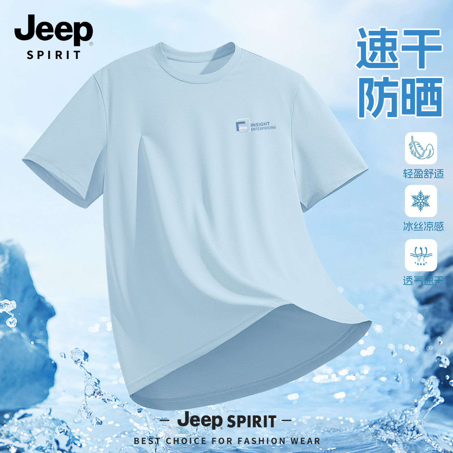 JEEP吉普男士短袖t恤夏季2026新款打底衫男百搭休闲速干衣服男款