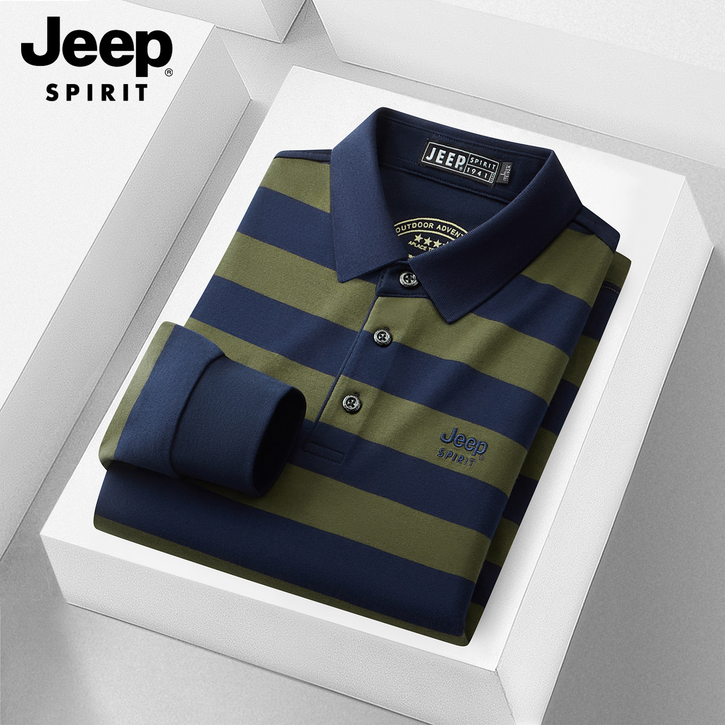 JEEP吉普纯棉长袖T恤男2025秋季新款宽松爸爸男士条纹翻领polo衫