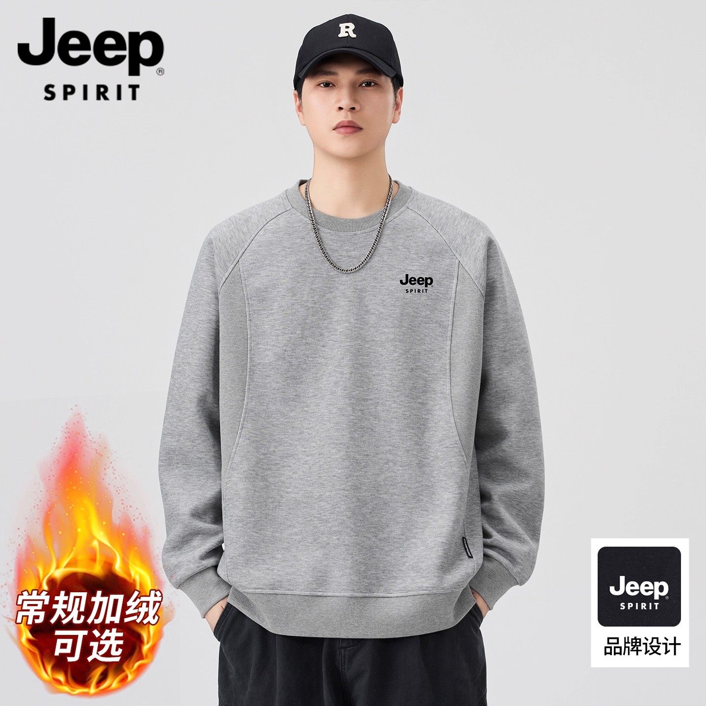 JEEP SPIRIT圆领卫衣男士秋季新款宽松加绒打底衫长袖t恤男上衣服