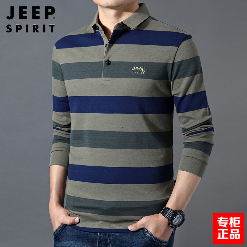 jeep吉普男装官方正品春秋新款长袖t恤男士休闲条纹polo衫衣服潮