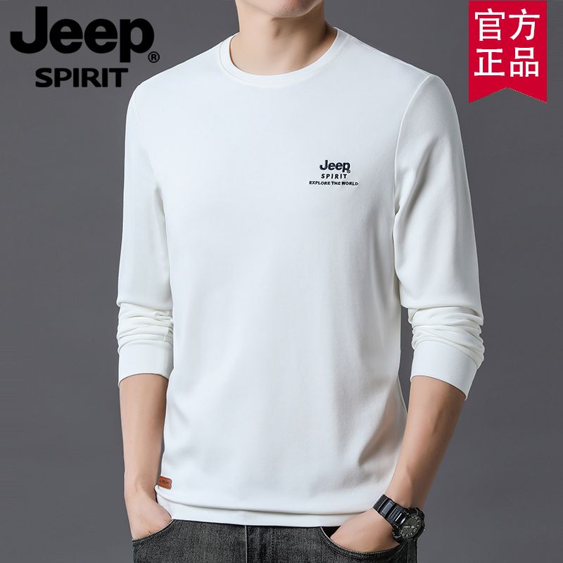 Jeep吉普纯棉男士长袖t恤男2025新款秋季上衣男生白色打底衫男装