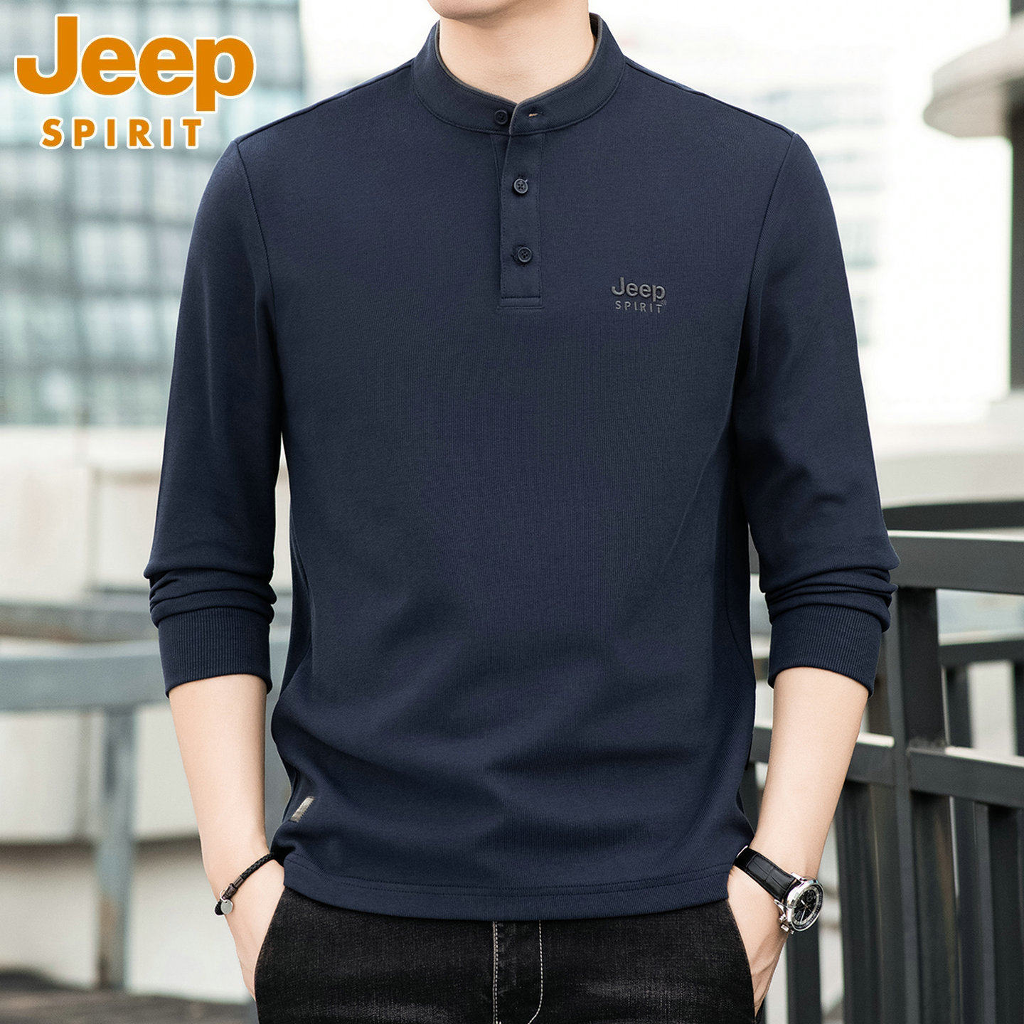 JEEP SPIRIT男士长袖Polo衫2025秋季新款休闲翻领T恤打底衫上衣男
