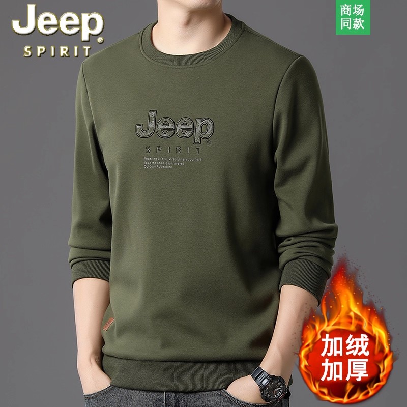 JEEP SPIRIT品牌春秋加绒加厚长袖T恤圆领打底衫男士宽松休闲卫衣