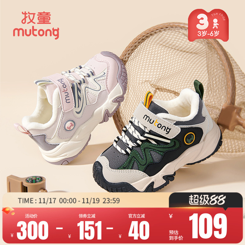 • 牧童儿童运动鞋2025秋冬新款男童鞋女童保暖鞋轻便减震户外休闲鞋