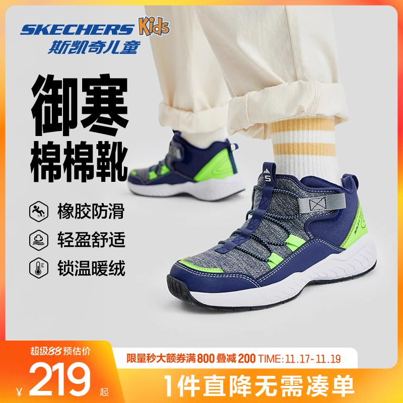 • 斯凯奇儿童冬季二棉鞋男童加厚新款保暖鞋子女童防水运动加绒鞋