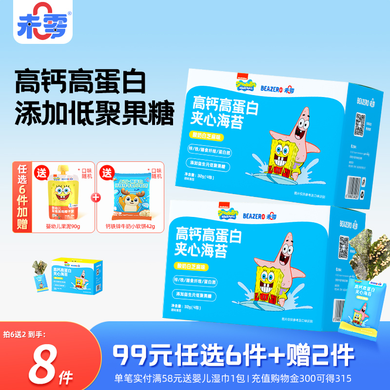 未零beazero海绵宝宝夹心海苔高钙高蛋白儿童零食营养健康海苔片