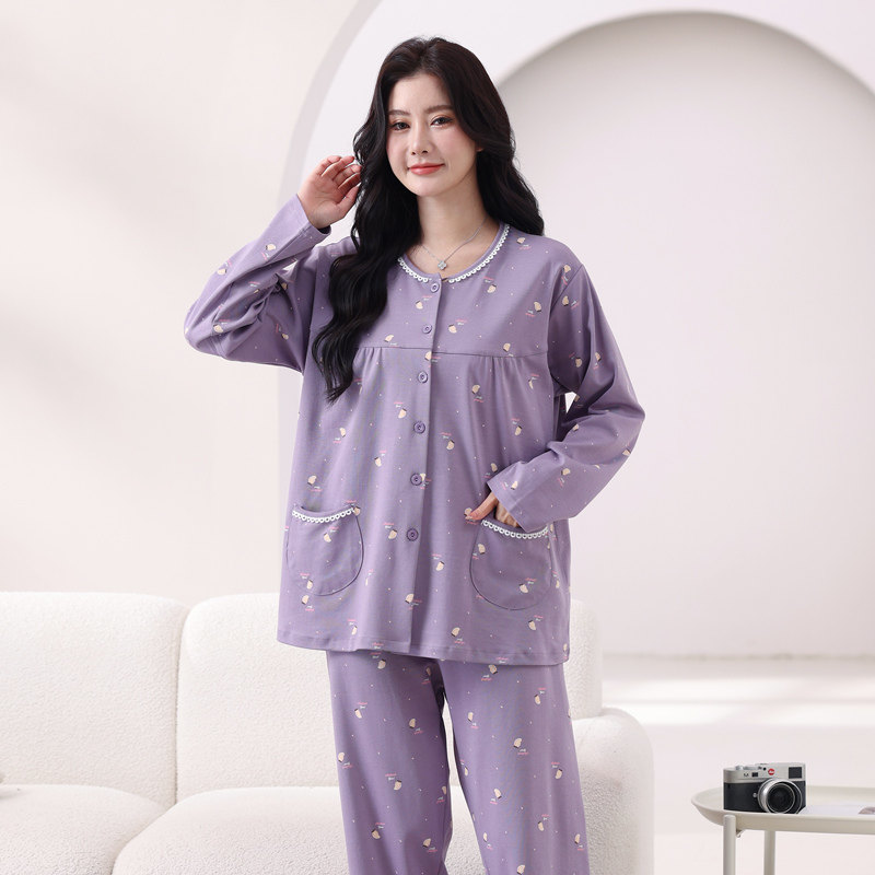 春季大码中年妈妈睡衣纯棉女加肥加大200斤春秋棉纱家居服中老年