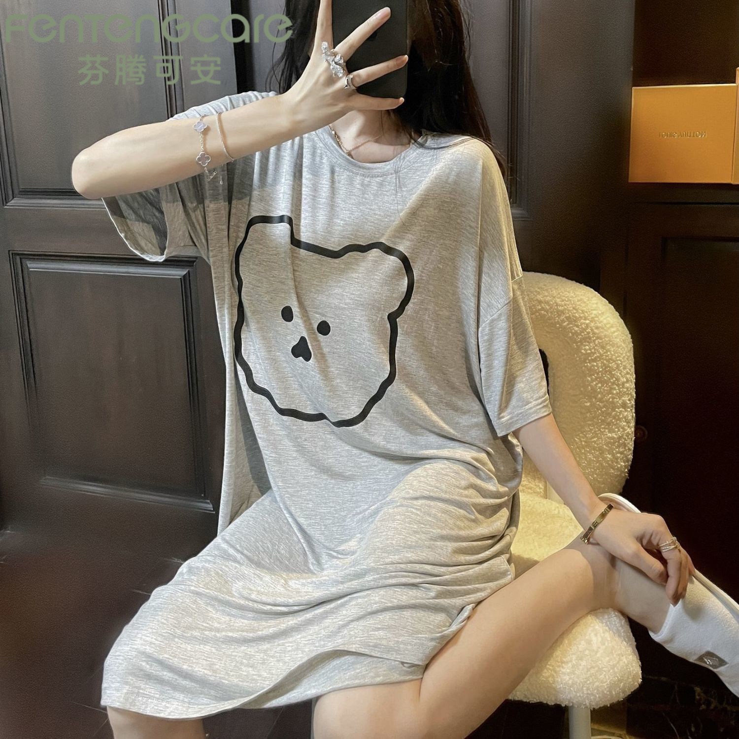 帕兰朵女士带胸垫莫代尔短袖睡裙夏季凉感加肥加大码可外穿家居服