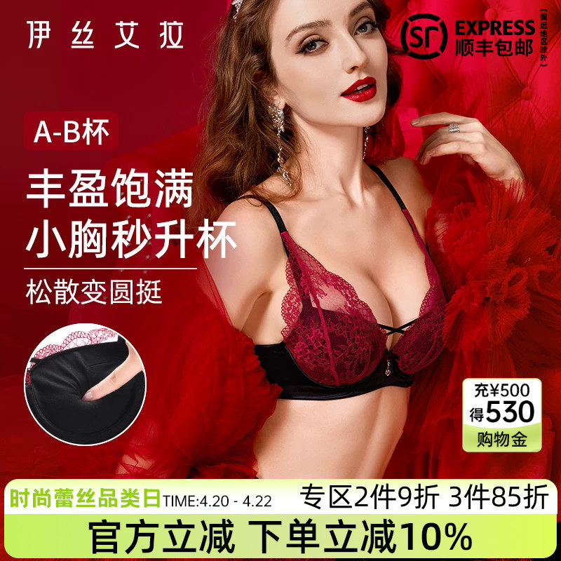 伊丝艾拉红色内衣小胸聚拢显大收副乳防下垂结婚新娘性感文胸套装