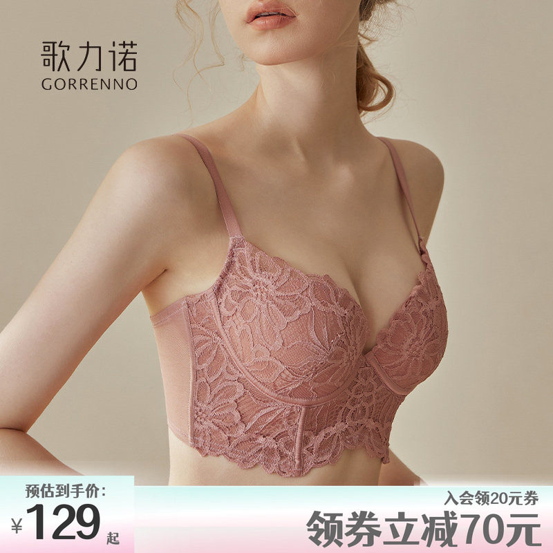 歌力诺内衣女薄款钢圈大胸显小聚拢性感蕾丝收副乳防下垂文胸套装