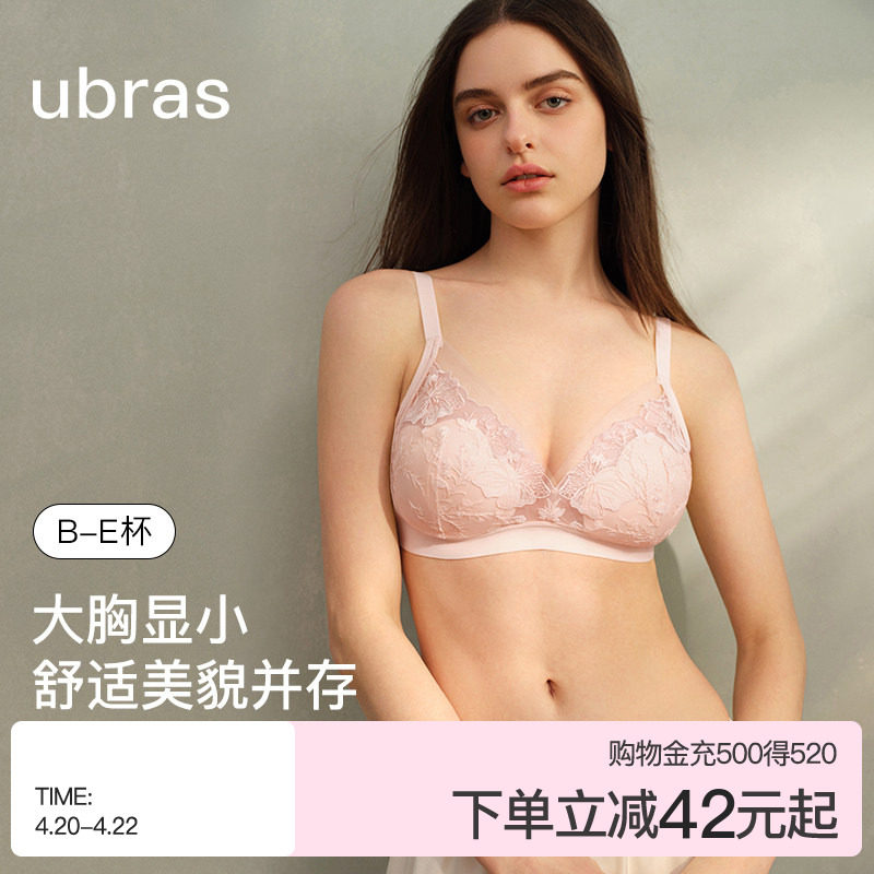 ubras大胸显小内衣微聚拢大码显瘦轻薄收副乳防下垂文胸罩套装
