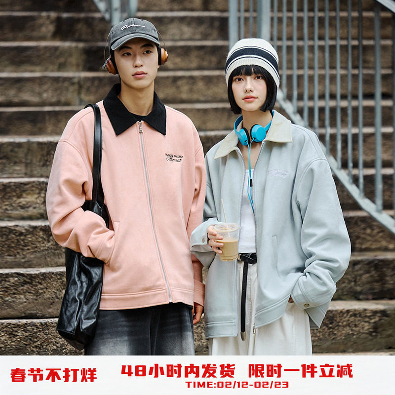 PSO Brand男装女装麂皮绒加厚夹克外套女款上衣秋季休闲情侣装潮
