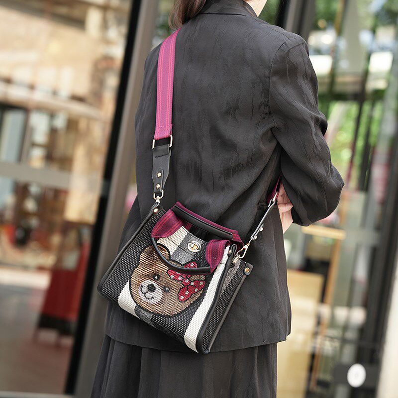 新款帆布包时尚百搭手提包双面金丝提花刺绣单肩包女士便携便当包