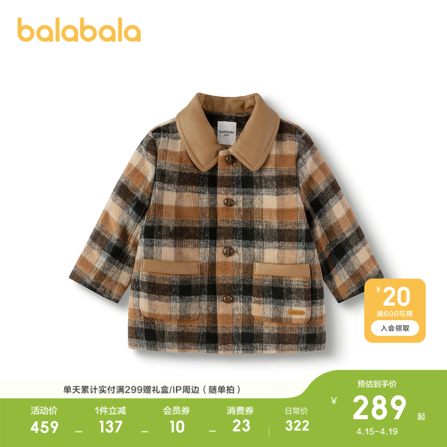 【商场同款】巴拉巴拉男童棉服格纹毛呢外套衣服新款冬装复古时尚