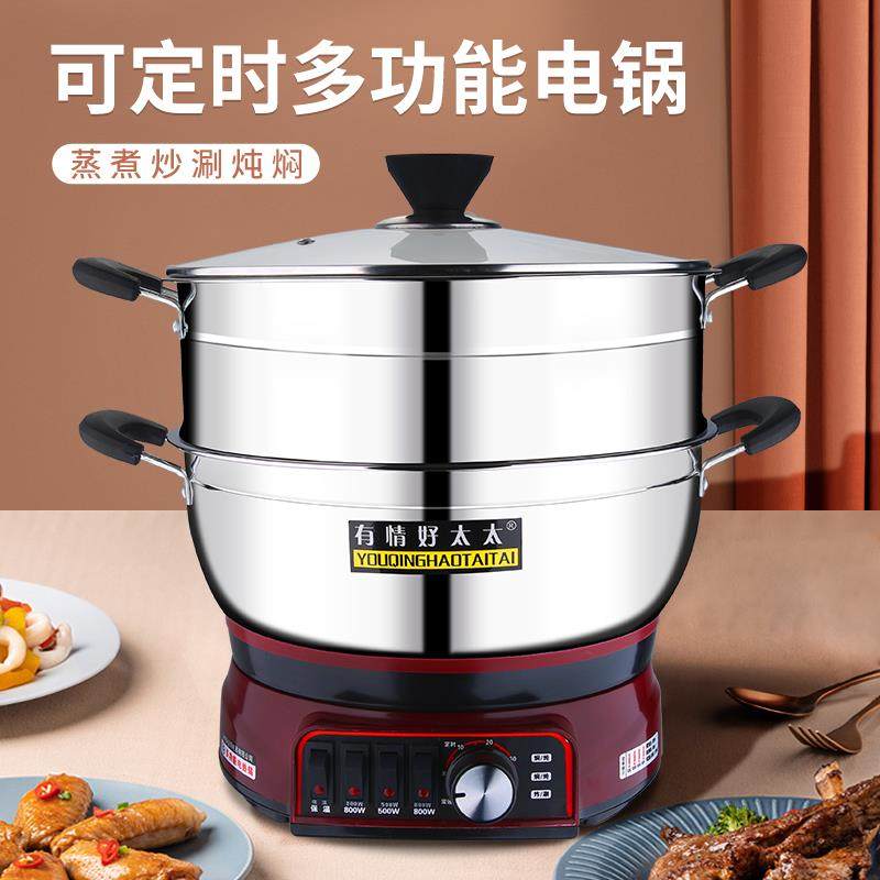 电热锅多功能家用炒菜电炒锅一体插电大容量不锈钢电锅蒸煮炖火锅