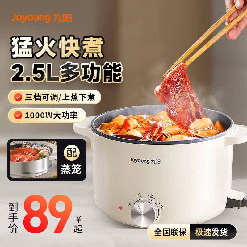 九阳电煮锅多功能家用型一体电火锅宿舍学生炒蒸煮泡面不沾小电锅