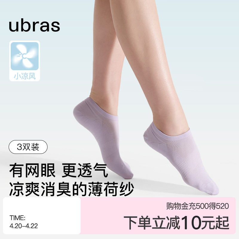 ubras透气网眼中筒袜短袜子男女情侣隐形袜防臭船袜女抗菌不掉跟