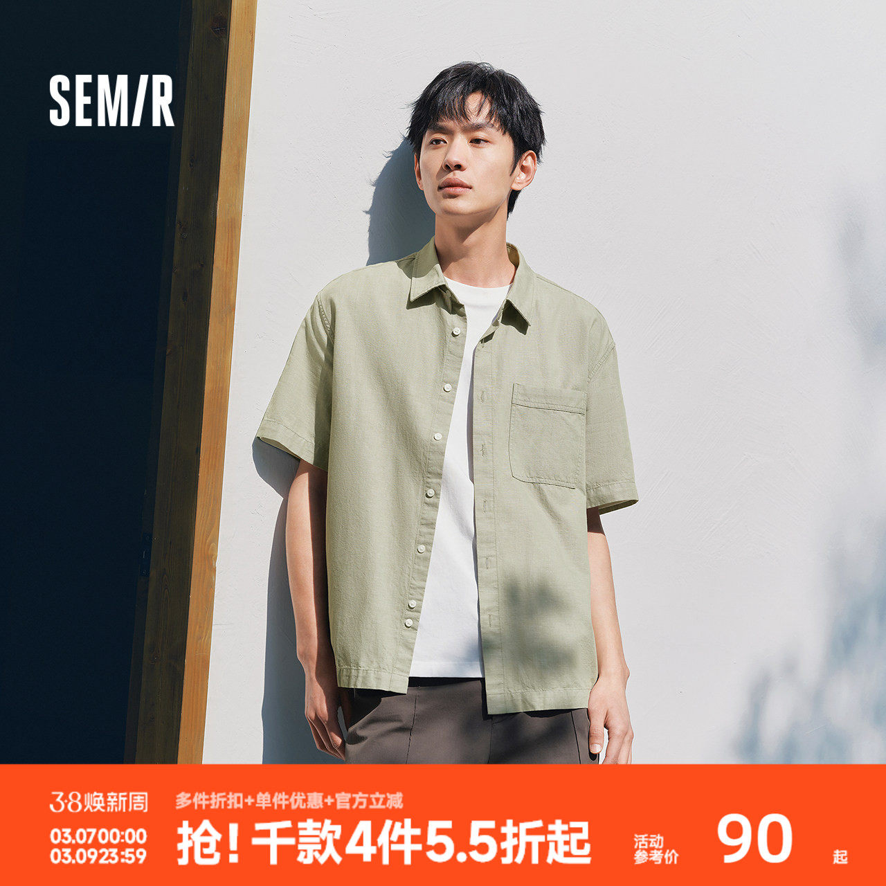 森马短袖衬衫男夏季棉麻纯色日常通勤上衣小宽松简约百搭外穿开衫