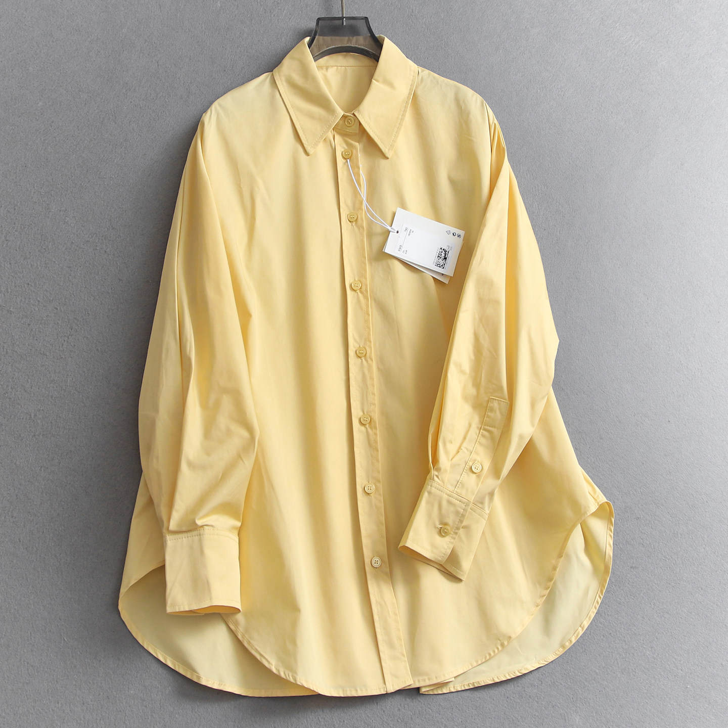 极简纯色宽松廓形中长款翻领2026春季新款长袖通勤百搭女衬衫Q870