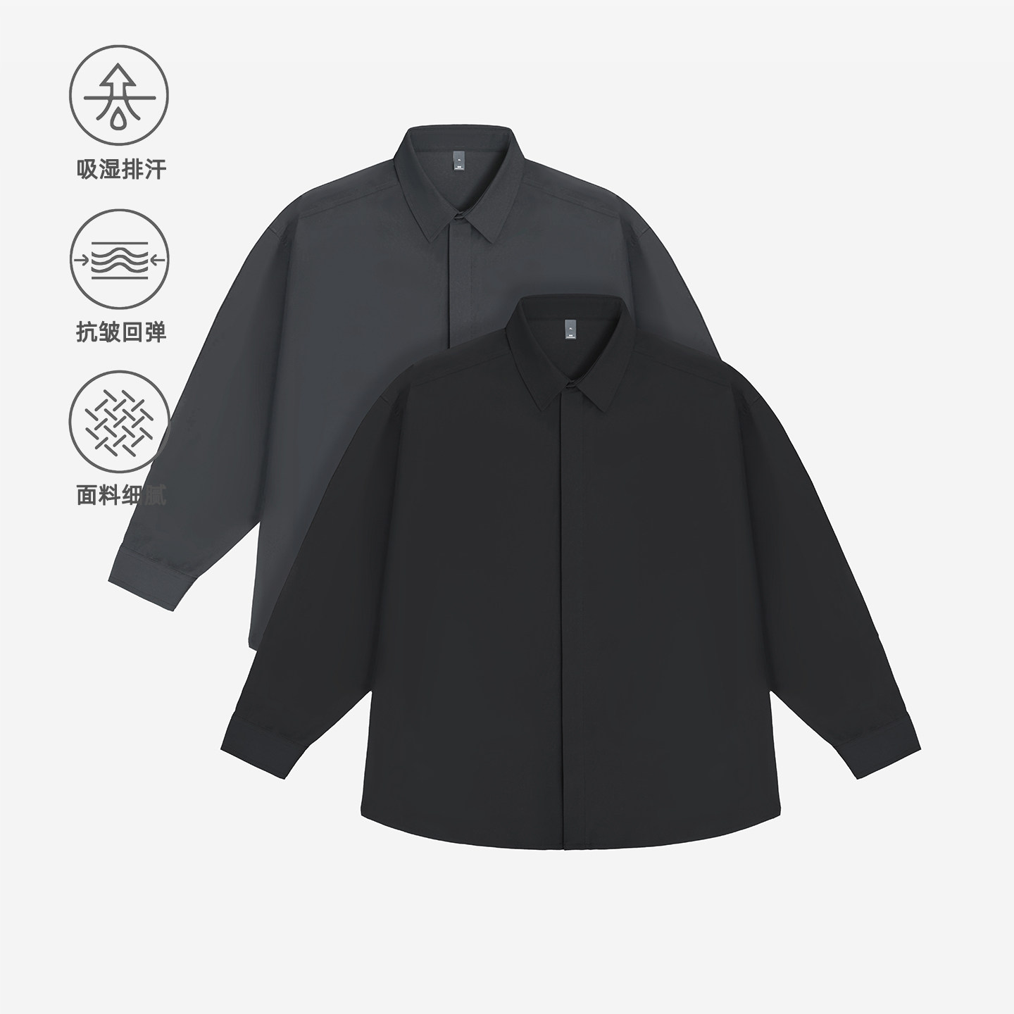 气质轻熟风宽松男士衬衫长袖纯色丝滑免熨烫垂坠高级感休闲抗褶皱
