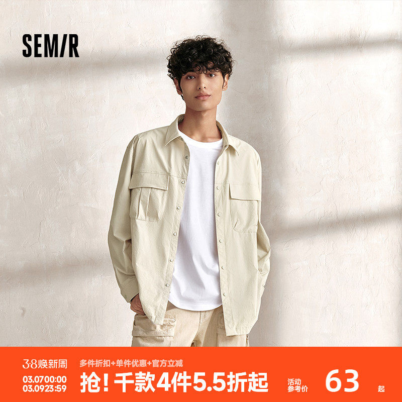 森马长袖衬衫男外穿式山系户外工装外套宽松纯色百搭秋装翻领上衣