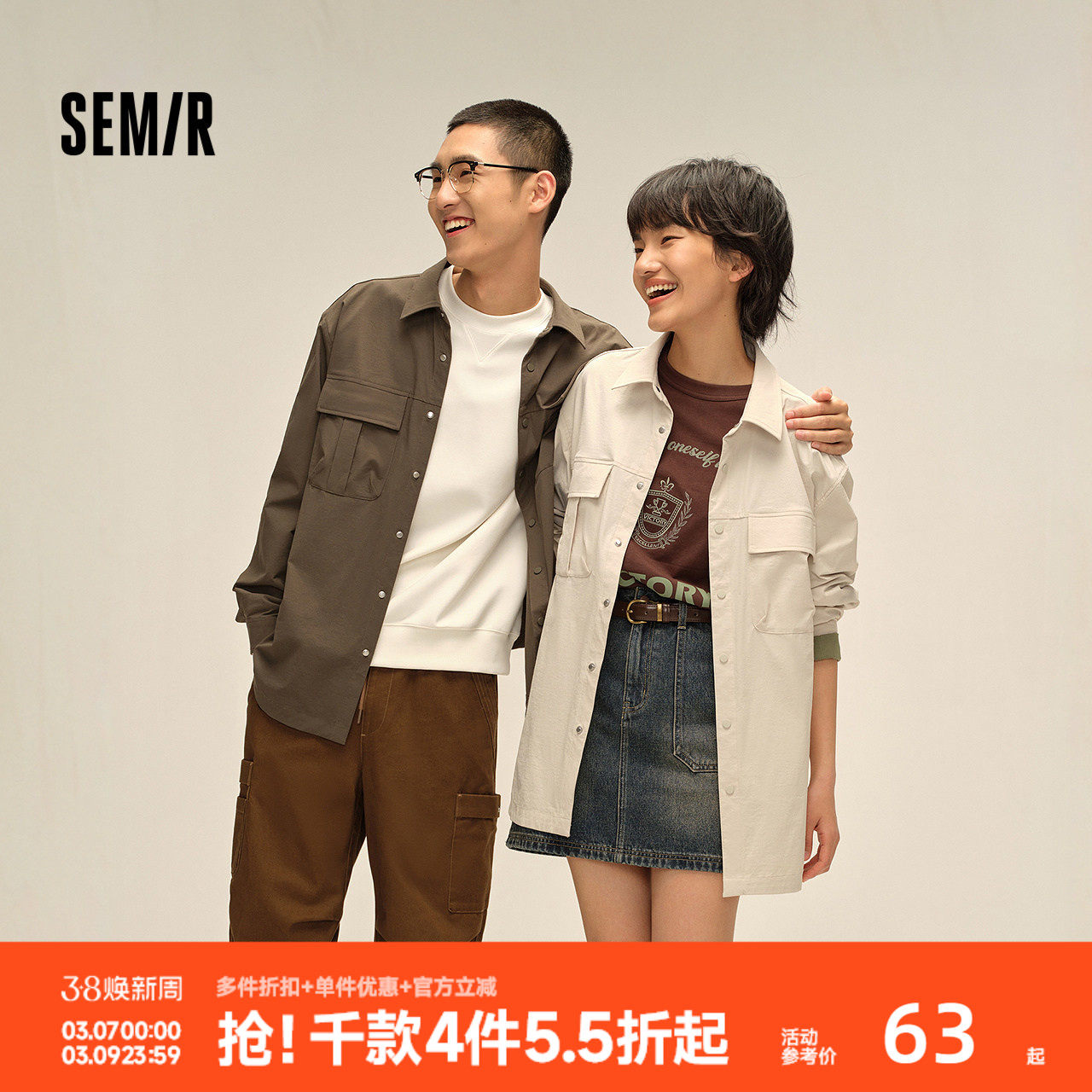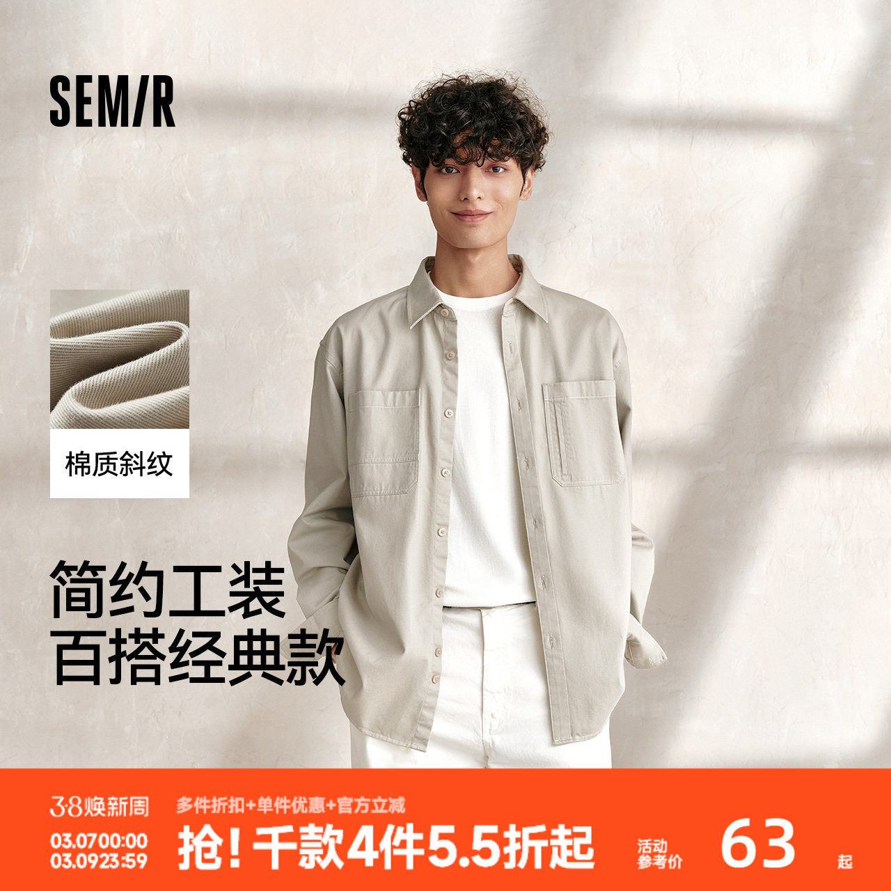 森马长袖衬衫男宽松工装外套情侣款纯色百搭上衣纯棉秋装潮酷流行