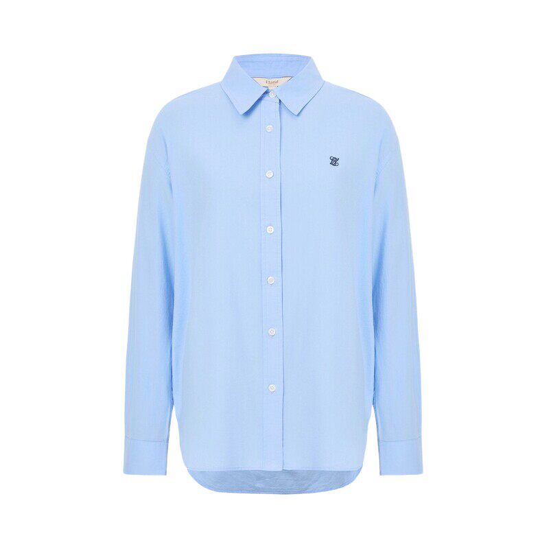 【100%棉】Eland衣恋衬衫女单排扣宽松通勤长袖纯色休闲上衣夏季